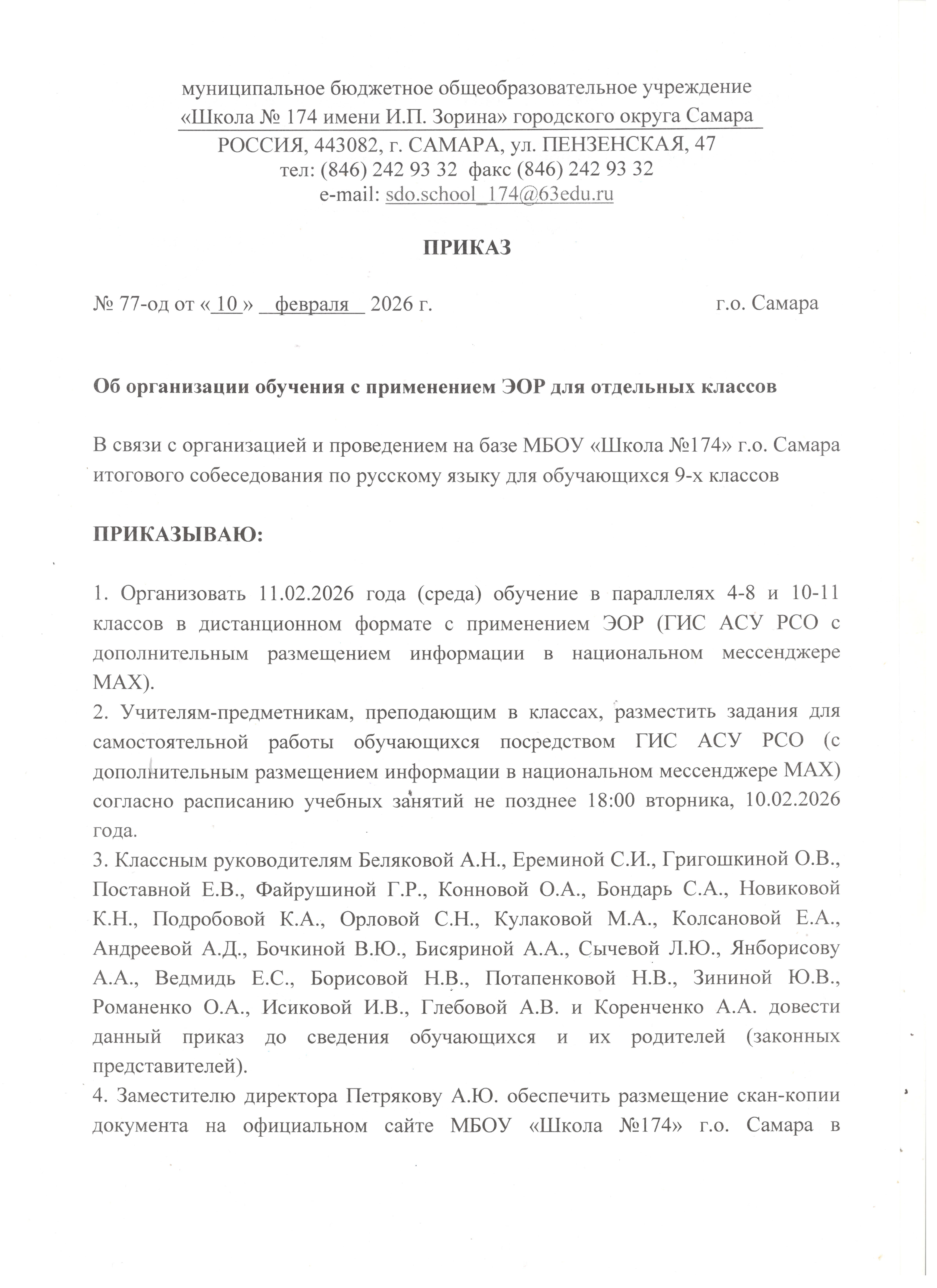 Скан-копия приказа директора школы об особом режиме обучения на 11 февраля прилагаем ниже.